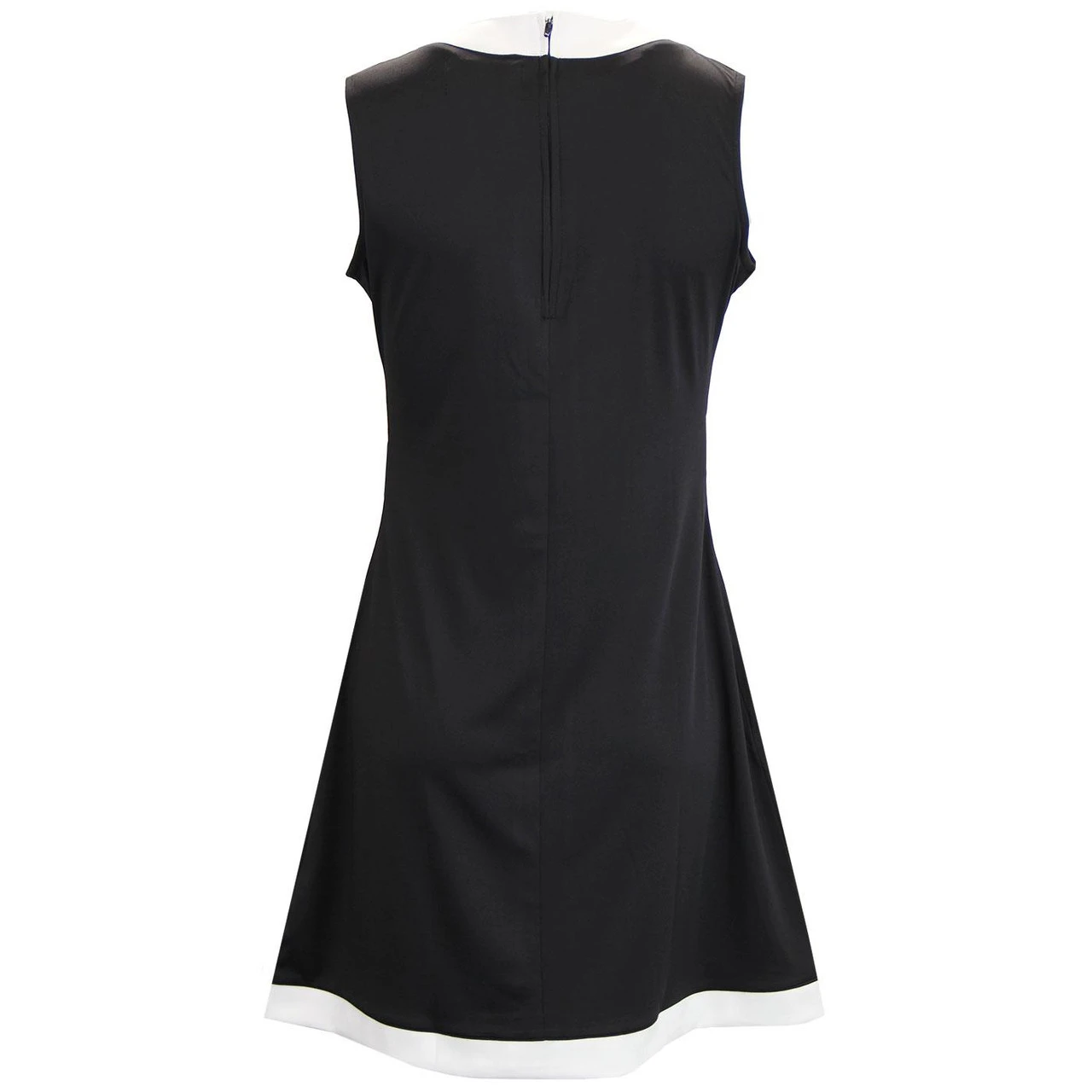 - White collar, centre stripe and hem.