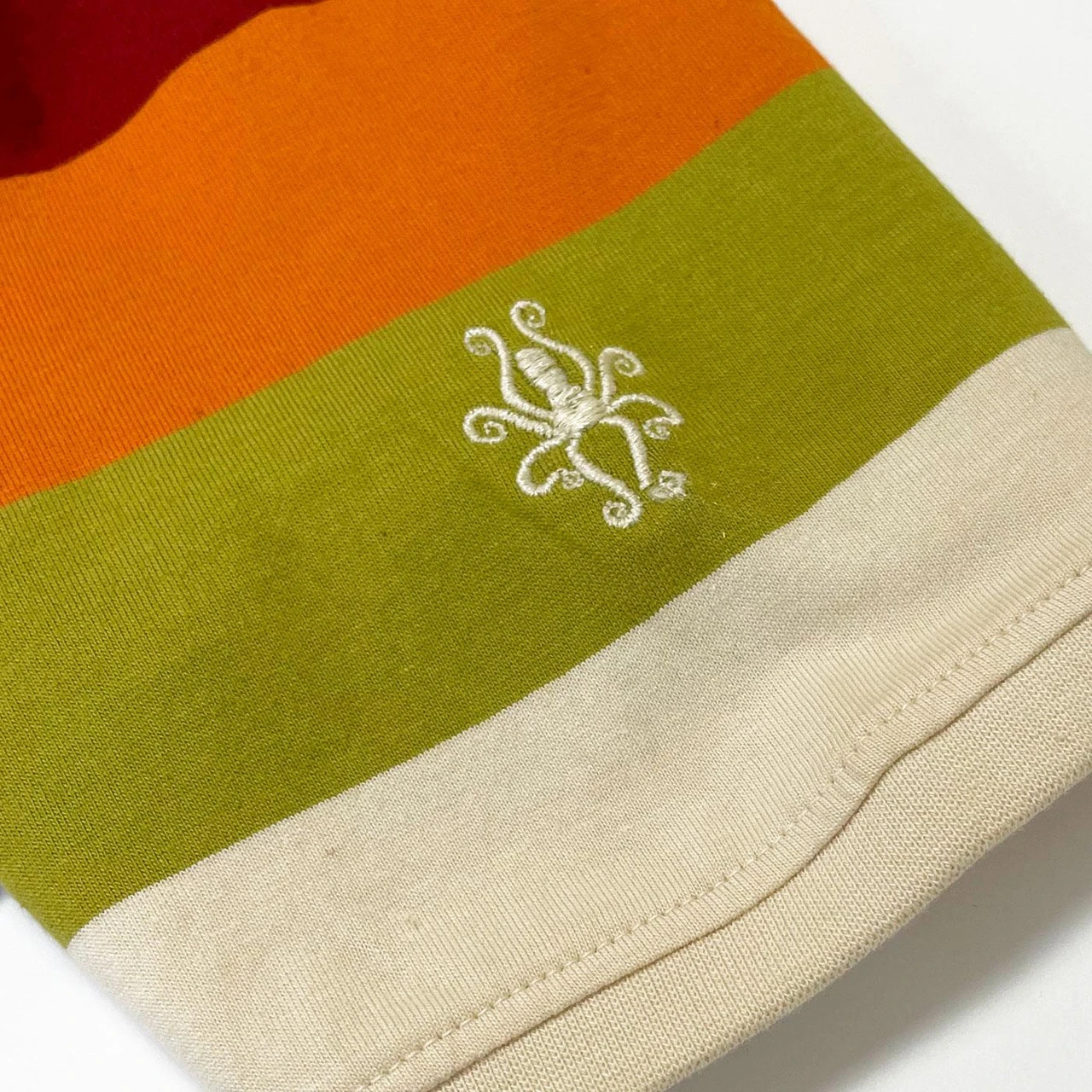 The Beatcomber retro surf stripe t-shirt in McCartney’s tie is as the colour might suggest inspired by an eye catching article of neckwear worn by the legend, Sir Paul McCartney. Aside from the awesome vintage colour palette, the Beatcomber offers a nice weight jersey cotton fabrication, subtle contrast Octopus signature embroidery to the left sleeve and will add a cool pop of colour when layered under a jacket. Perfect for an old skool retro 1970s outfit, the Beatcomber T-shirt features a striking 4 colour block stripe combination. Oh, and did we mention the tee is also influenced by a style worn by John Lennon c.1965 (in fact the name Beatcomber is derived from a pseudonym used by Lennon for articles published in Mersey Beat magazine).