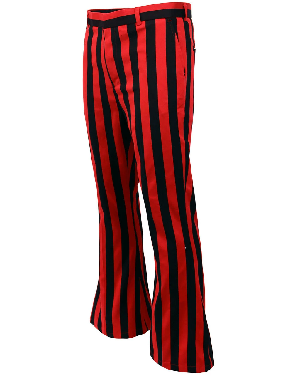 – Madcap England ‘Inferno’ men’s retro striped bellbottoms.