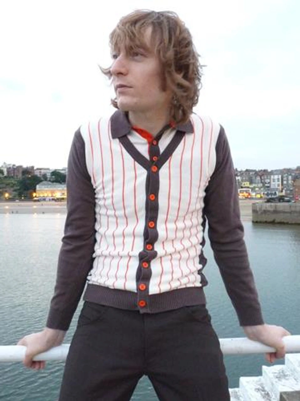 Colour: Brown/Off white with orange pin stripe.