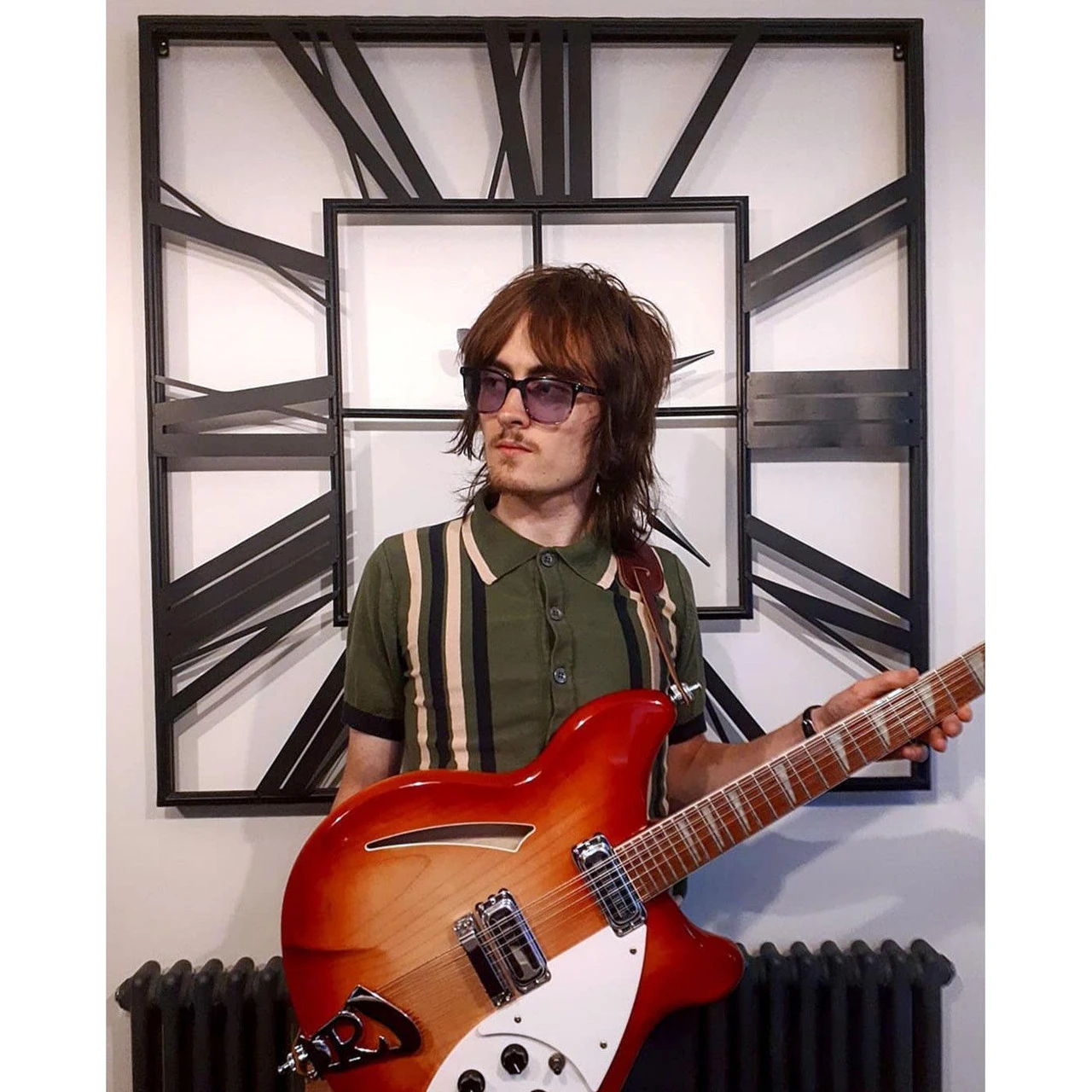 - Madcap England ‘Shockwave’ retro stripe panle knitted polo cardigan.