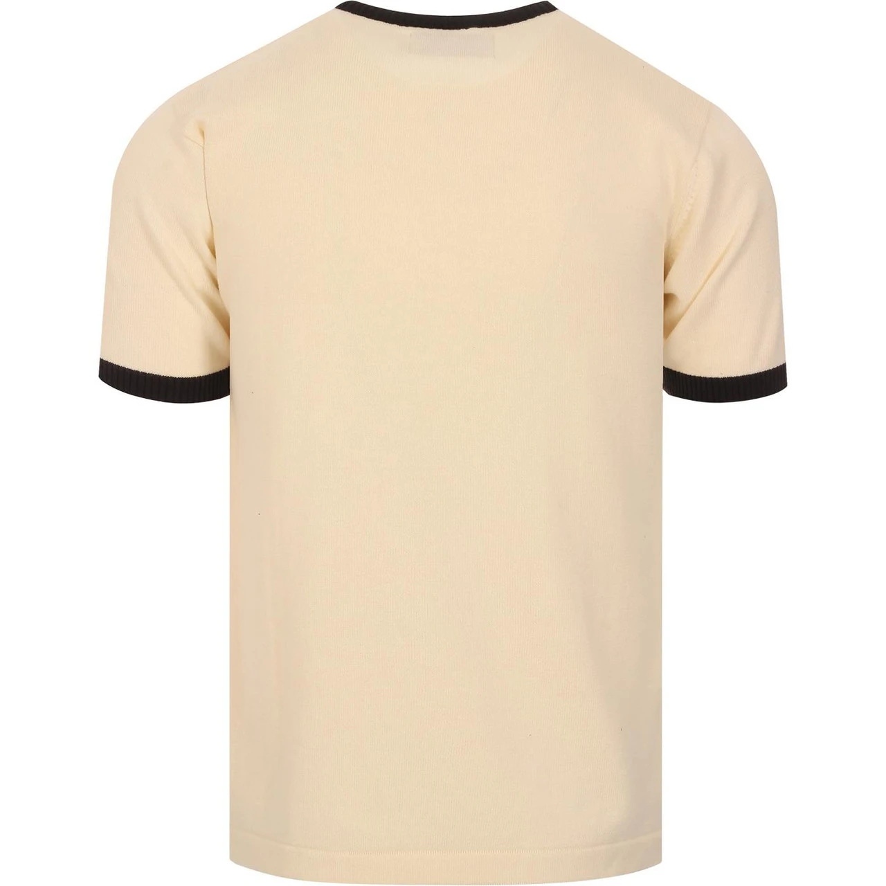- Madcap England Zen men’s mod stripe knitted grandad top in autumn blaze.