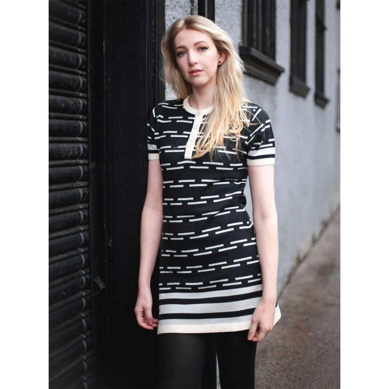 - Abstrast dash broken stripes to body with contrasting stripes in off white to skirt hem and sleeve